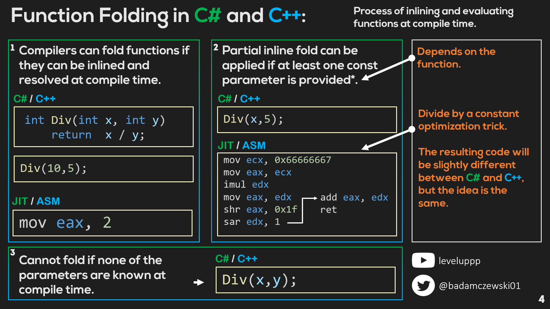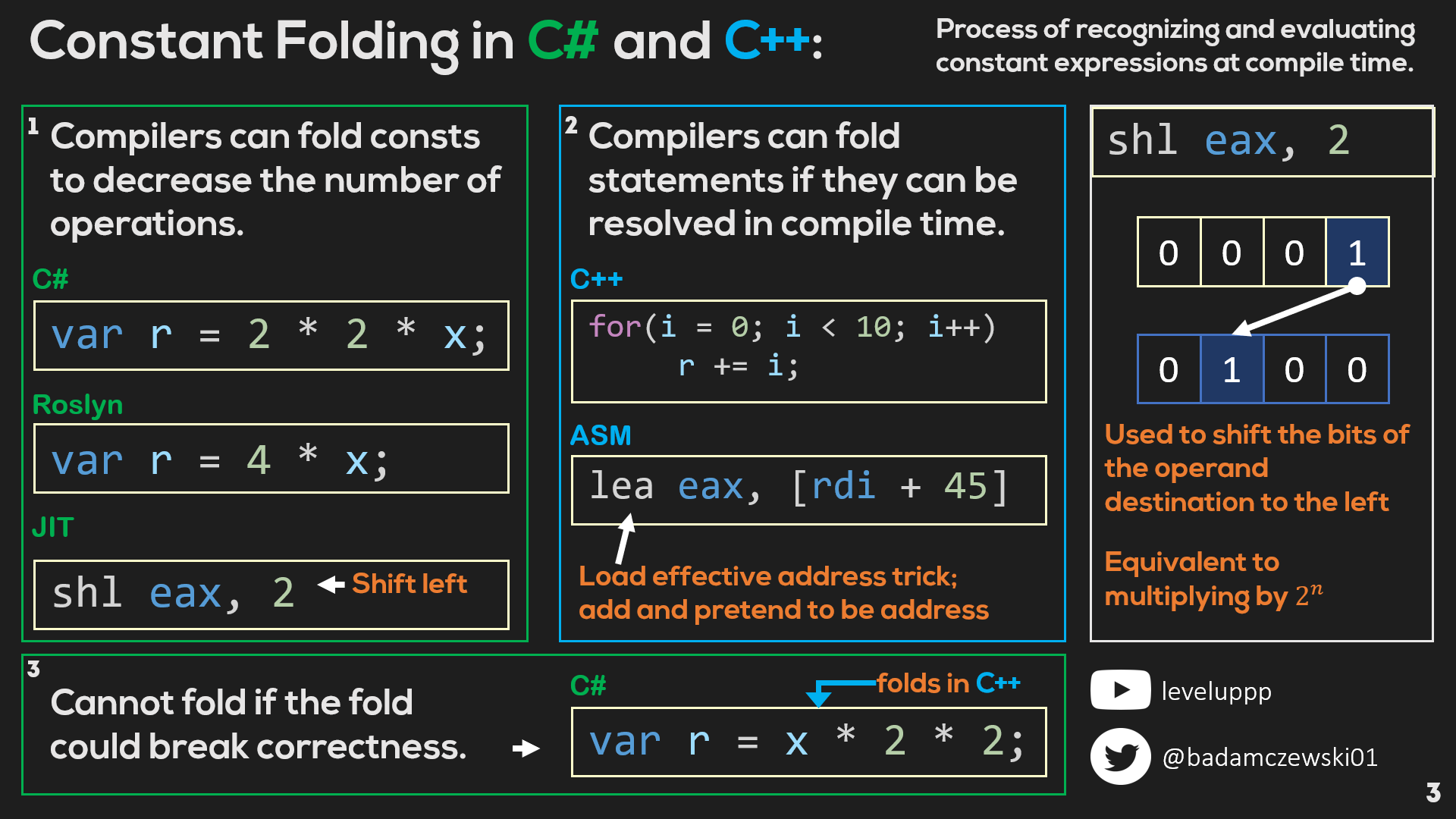 We shall start with compilation plus assembly language basics, and from there, we will cover one of the more straightforward compiler optimizations that compilers do, which is Folding.