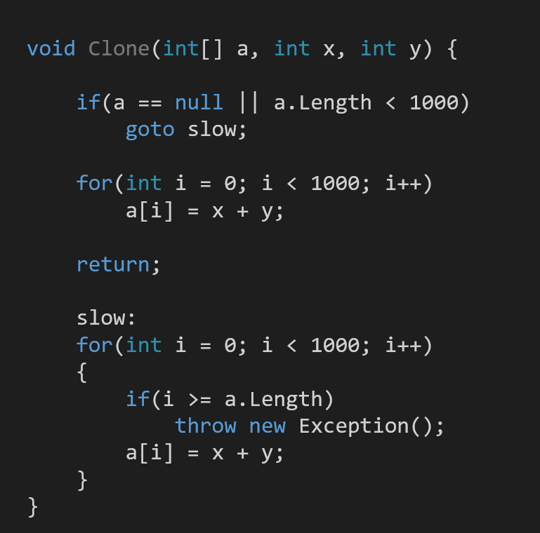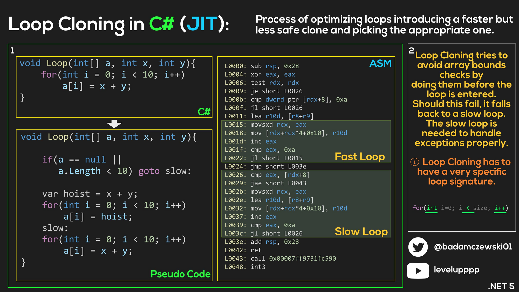 As you can tell by now, loop cloning in C# can be very stingy and picky, so you have to hit the pattern exactly for it to work. So here's an infographic showing most of the things that you have to get right: