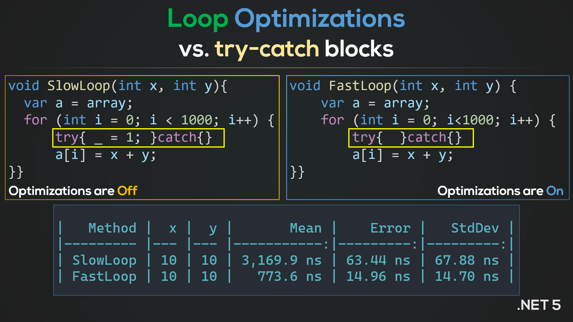 Let's start with C# (and dotnet) and two of its primary optimizations: