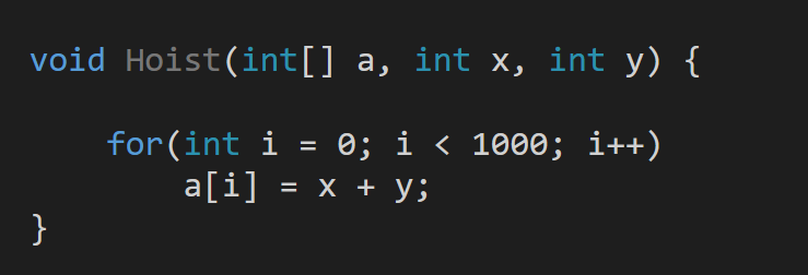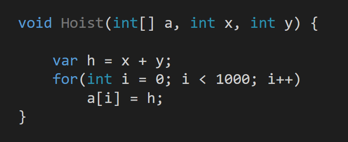 Hoising will move expressions that can be computed once out of the loop into a temporary variable (register) and resue it.
